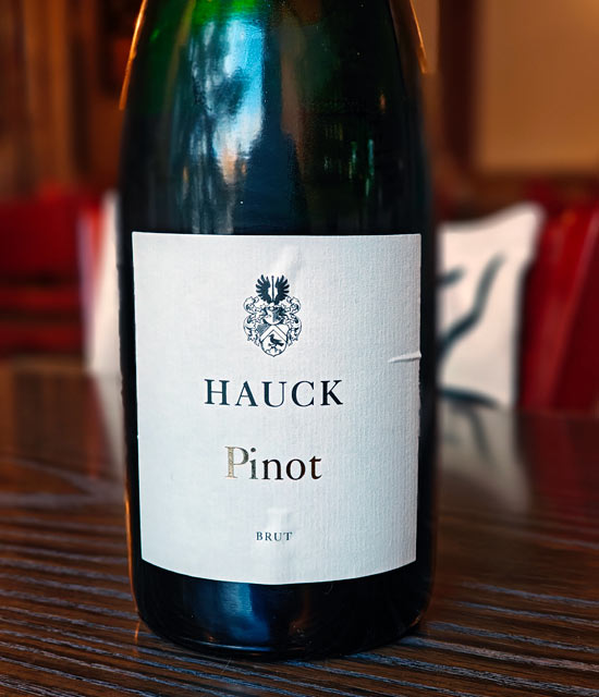 Hauckin Pinot Brut -kuohuviini Rheinhessenistä on mahtava yhdistelmä maa-artisokalle, sillä kuorikontakti viininvalmistuksessa antaa viinille juuri oikeanlaisen sävyn tälle ruoalle.