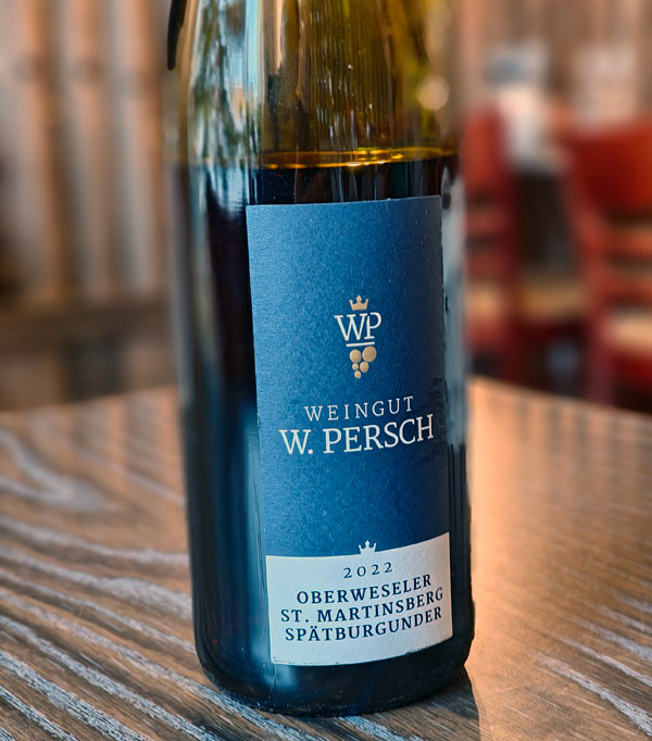 W. Perschin Pinot Noir on herkkä, hapokas ja tyylikkään aromikas punaviini. Se sopii täydellisesti pääruoan sorsalle.